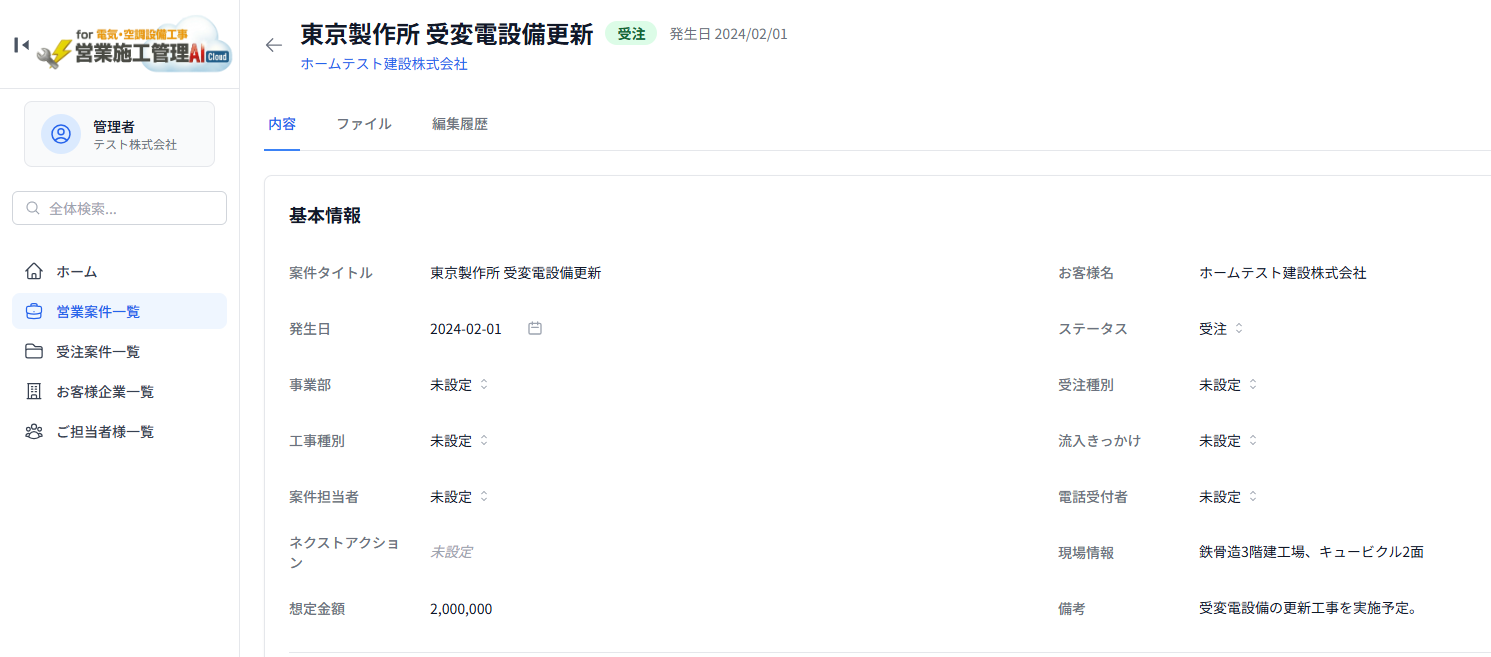 受注案件の管理
