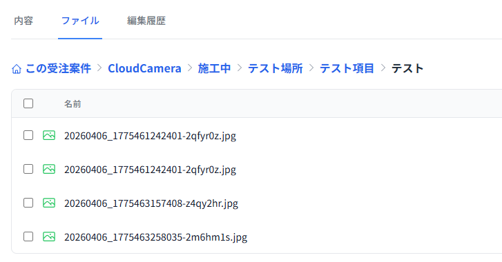 案件に紐づく見積書・図面・写真などのファイルをクラウド上で一括管理。フォルダ階層で整理でき、CloudCameraとの連携で現場写真も自動的に格納されます。必要な書類をすぐに見つけられます。